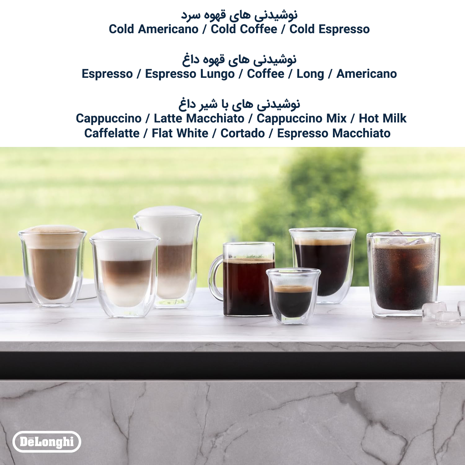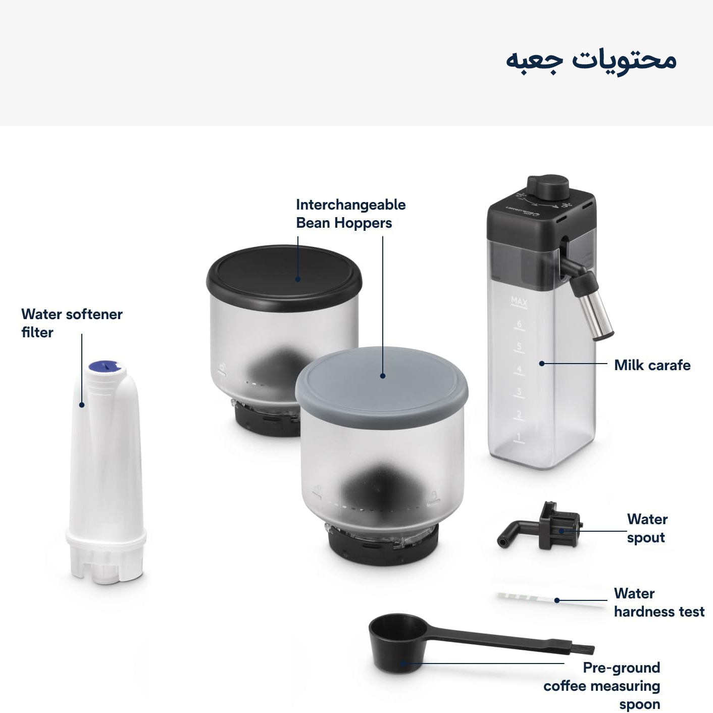 - سایر توضیحاتتنظیم آسیاب در 14 حالت / دارای 2 عدد مخزن شیر برای سرو نوشیدنیهای گرم و سرد / صفحه نمایش: رنگی 3.5 اینچی TFT / سیستم LatteCrema / امکان شخصی سازی منو