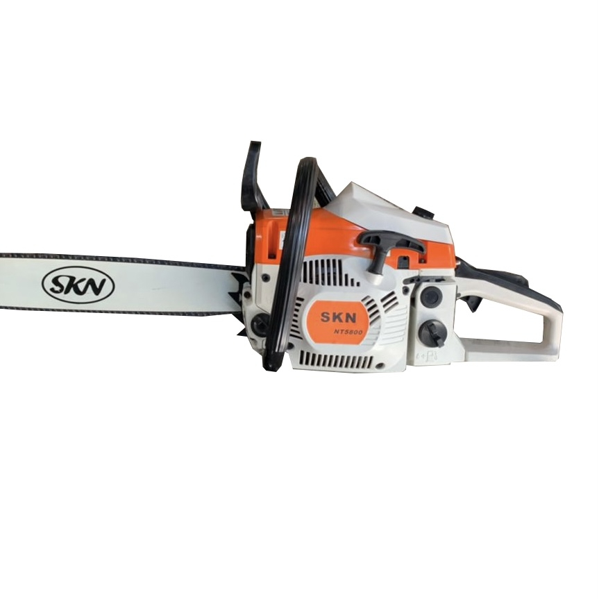 - سایر توضیحاتدارای ضربه گیر و ترمز دستی دارای دسته هندل دارای محافظ پلاستیکی فیلتر هوا دارای ساسات حرفه ای و با کیفیت دارای اینترلاک دریچه گاز دارای دستگیره ی نگهدارنده ی عقب دستگاه دارای دکمه دستی گاز دارای دکمه قفل گاز دارای سوییچ موتور دارای مخزن سوخت با کیفیت دارای مخزن روغن زنجیر دارای دسته جلو ثابت (جلوگیری از لرزش فراوان) دارای زنجیر باکیفیت و حرفه ای دارای تیغه با کیفیت قدرت موتور 3.1 اسب بخار توان موتور 2.3 کیلووات تیغه و زنجیر OREGON کانادا حجم موتور 58 سی سی طول تیغه 50 سانتیمتر وزن 5.5 کیلوگرم بدون تیغه و زنجیر نوع موتور دو زمانه هوا خنک تک سیلندر نوع سوخت به صورت ترکیبی ترکیب بنزین و روغن روغن مناسب سوخت روغن موتورهای دو زمانه روغن مناسب زنجیر روغن موتور با استاندارد 10# 20# 30# نسبت ترکیب روغن و بنزین به نسب یک به 20 در 20 ساعت اول به نسبت یک به 25 بعد از 20 ساعت اول حجم مخزن سوخت 550 میلی لیتر حجم مخزن روغن زنجیر 260 میلی لیتر حداکثر دور موتور با تیغه 10000 دور بر دقیقه حداکثر دور موتور در حالت استندبای 2800 دور بر دقیقه سیستم روغن کار زنجیر دارد به صورت اتوماتیک