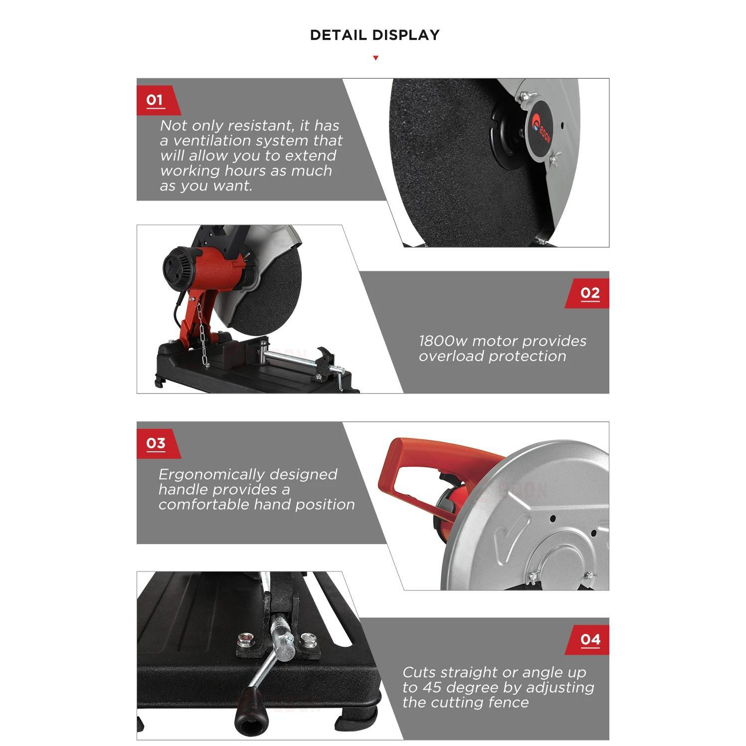 این ابزار برقی دارای موتوری قدرتمند با توان 1800 وات و صفحه گردان آن قادر است با سرعتی معادل 3600 دور در دقیقه گردش کند و از قطری برابر 355 میلیمتر برخوردار است .