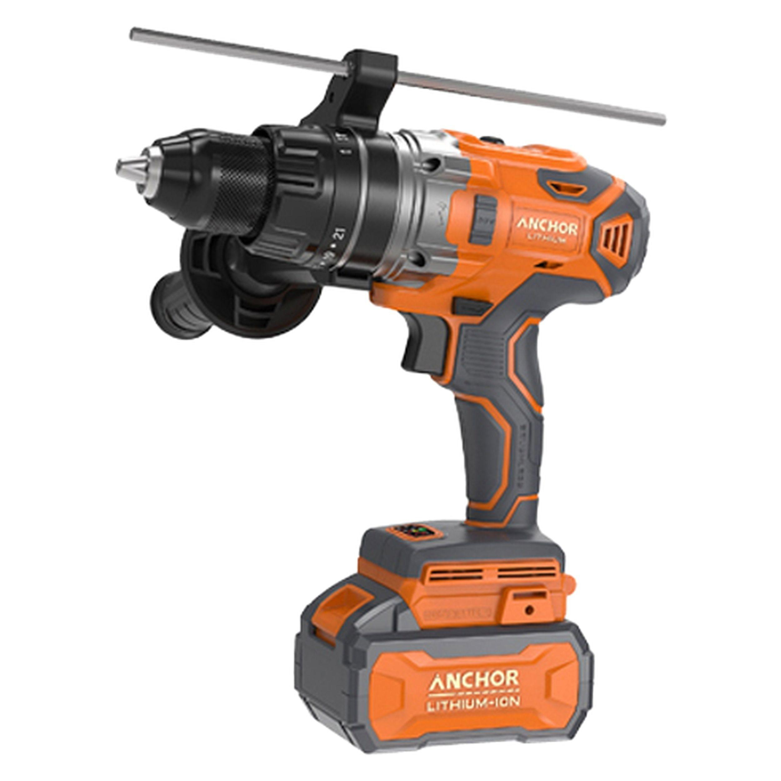 - سایر توضیحاتدریل پیچ گوشتی چکشی شارژی آنکور تک باتری (براشلس) دارای یک عدد باتری 20 ولت لیتیوم 4 آمپر مجهز به سه نظام اتوماتیک فلزی 13 میلیمتر سرعت در حالت بیباری 2000-0 و 400-0 دور در دقیقه مجهز به گیربکس دو سرعته دارای نمایشگر شارژر و چراغ LED جهت کار در محیط تاریک به همراه جعبه BMC،شارژر ،دسته کمکی،قلاب کمری و کمربند کمکی