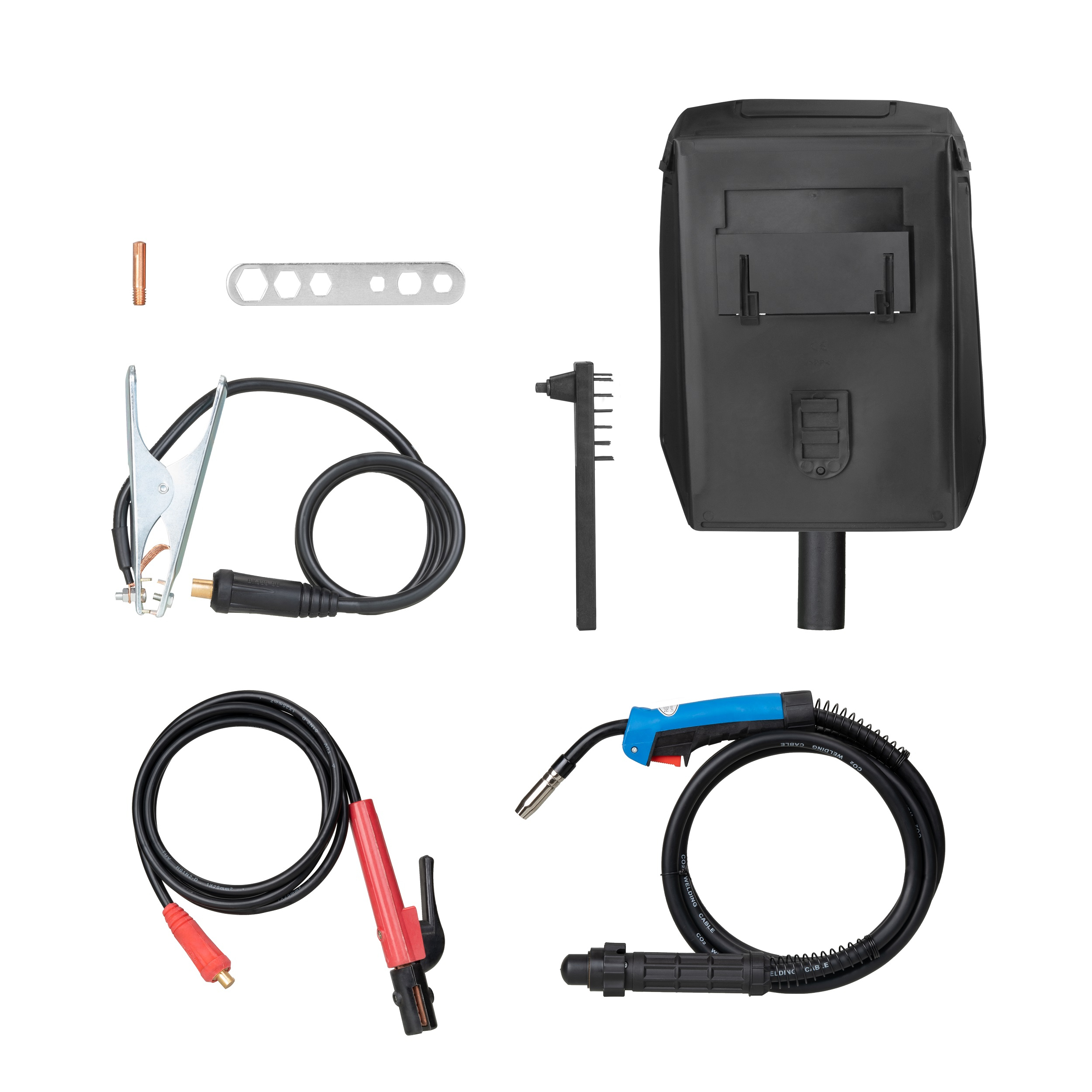 همراه دستگاه، مجموعهای کامل از تجهیزات جانبی شامل سه کابل جوشکاری با طول ۳ متر، کابل اتصال دو متری، تورچ جوشکاری AK15، انبر جوش، انبر اتصال، ماسک و فرچه جوشکاری ارائه شده است. این اقلام از نظر کیفی با استانداردهای متوسط به بالای بازار هماهنگ هستند و امکان استفاده بلافاصله پس از باز کردن بستهبندی را فراهم میکنند. کابلها دارای ضخامت کافی برای انتقال جریان بالا بوده و اتصالات آنها نیز از جنس مناسب و مقاوم طراحی شدهاند. همچنین طول کابلها بهگونهای است که بدون نیاز به اکستنشن، محدوده مناسبی برای حرکت آزادانه در اطراف قطعه کار فراهم میسازد.