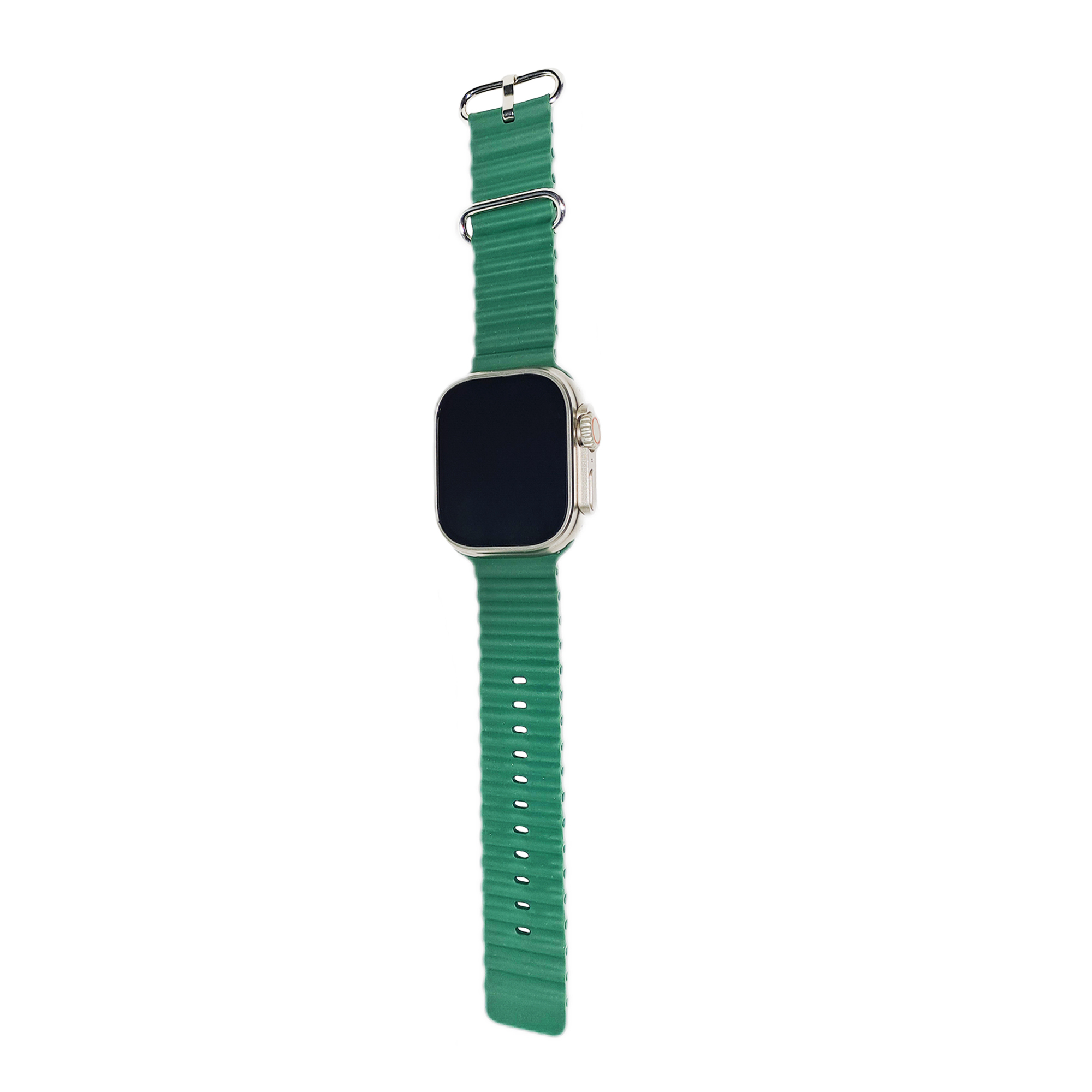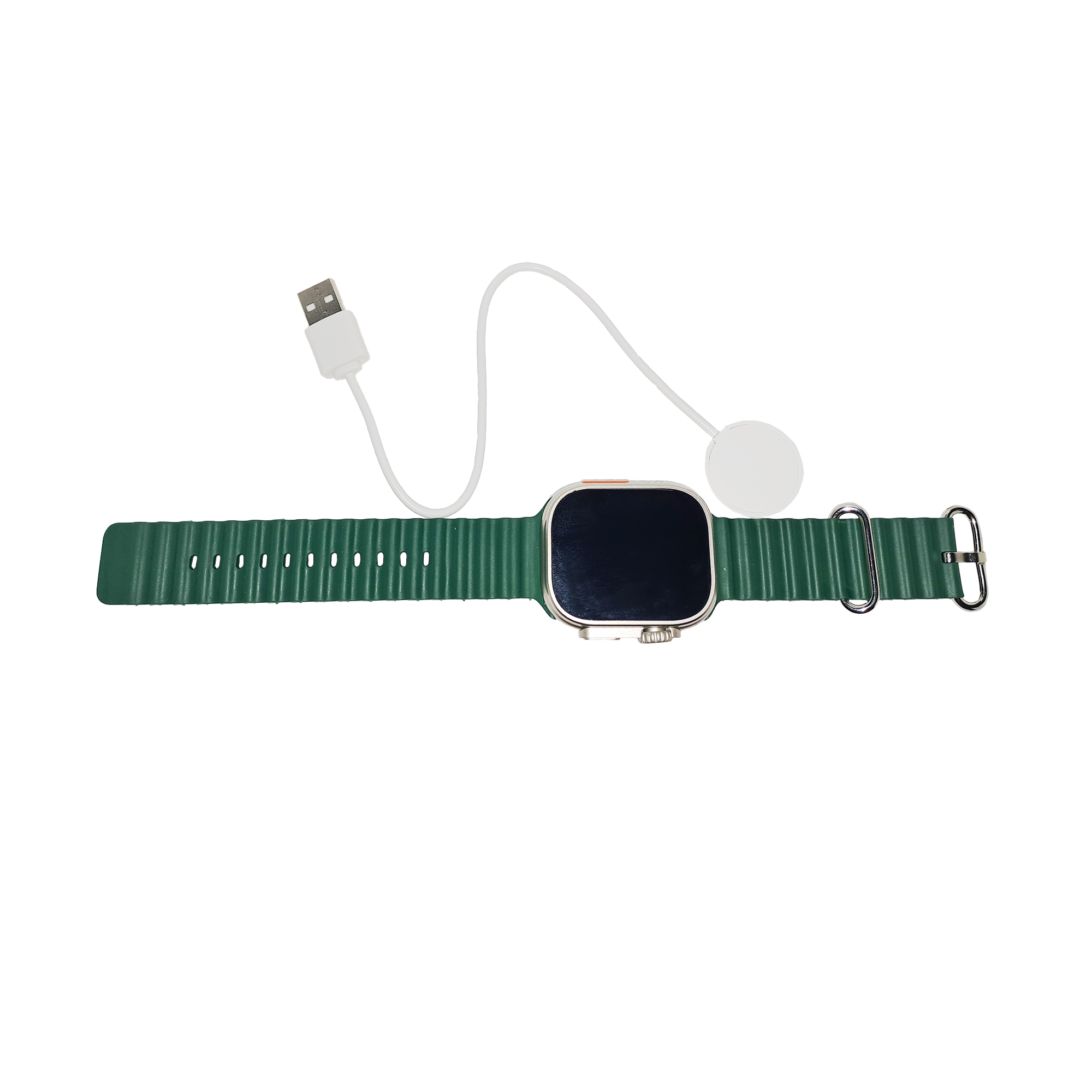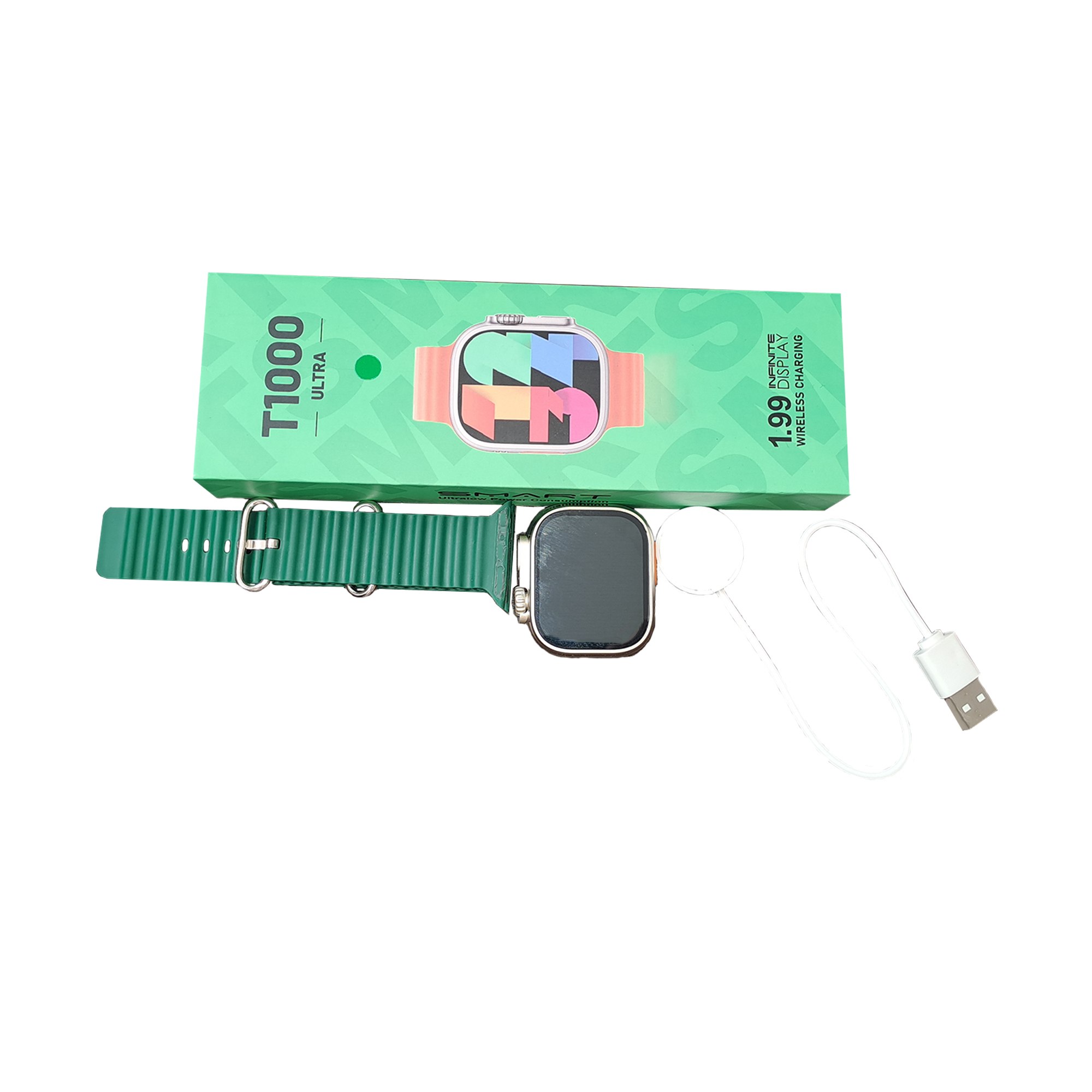 ساعت هوشمند T1000 ULTRA با صفحه نمایشی بزرگ (45 میلیمتری) و قابلیت های جدید، یک اسمارت واچ عالی برای استفاده روزمره و ورزشی است. این ساعت از کیفیتی مطلوب بهره میبرد و امکاناتی همچون : قابلیت شماره گیری، برقراری تماس و مکالمه،سنسورهای سلامتی فشار خون، ضربان قلب، گام شمار، اکسیژن خون، پایش خواب و….. تجربه هیجان انگیزی برای خریدارانش ایجاد میکند. واچ با زمان دلخواه طراحی شده است. این ساعت جدید ترین نسخه کپی اپل واچ سری 8 با صفحه نمایش فول اسکرین 2/02 اینچ بدون حاشیه و سایز 47 میلی متری دقیق می باشد. بدنه بسیار با کیفیت بر زیبایی این ساعت افزوده است. دو دکمه کناری هر دو فعال و Magic Button ساعت قابل استفاده می باشد. در سمت راست ساعت میکروفون و در سمت چپ اسپیکر وجود دارد . سرعت جابجایی در منو عالی و ساعت دارای پردازنده قدرتمند RTK8762D و بدون هنگی می باشد و قابلیت قرار دادن عکس دلخواه بر روی صفحه نمایش را دارا می‌باشد. این ساعت دارای باطری 380 میلی آمپری قدرتمند می باشد ، همچنین قابلیت انتخاب بی صدا شدن (سایلنت) و ویبره و تنظیم زمان ساعت به صورت دستی را دارد. این ساعت از NFC و بلوتوث پشتیبانی می کند و امکان اضافه کردن انواع واچ فیس ها ،دارای جدیدترین واچ فیس ها ، قابلیت رمز گذاری را دارا می باشد با نصب اپلیکیشن WEAR PRO به راحتی میتوان از طریق گوشی موبایل ساعت را تنظیم و ویرایش کرد و ساعت نیز دارای آخرین ورژن نرم افزار اختصاصی WEAR PRO با ظاهر جدید می باشد . این ساعت دارای قابلیت نصب تمامی بند های اپل‌ واچ موجود در بازار می باشد. از دیگر ویژگی های این ساعت میتوان به نمایش برنامه های باز ،سنسور های سلامتی و ورزشی و ضربان قلب، فشار خون، دمای بدن ،اکسیژن خون، GPS ،سنسور قند خون، پایش تنفس، قابلیت مکالمه و پاسخ به تماس ها، مشاهده پیام های تمامی شبکه های اجتماعی، نمایش اسم مخاطبین هنگام تماس ورودی، قابلیت زوم در منو و وارد شدن به برنامه ها، دارای برنامه هواشناسی، اشتراک گذاری موقعیت مکانی را نیز می‌باشد. این ساعت استاندارد و دارای شارژر وایرلس است. همچنین بلوتوث نسخه 5.2 را نیز پشتیبانی می کند.