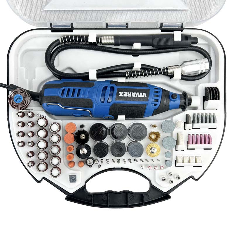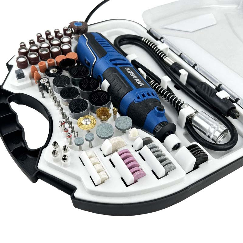 فرز مینیاتوری ویوارکس مدل VR3211-MG مجهز به موتوری با توان 220 وات است که با ولتاژ 220 – 240 ولت و فرکانس 50 – 60 هرتز کار می کند. سرعت این فرز در حالت آزاد 12000 تا 36000 دور در دقیقه و سایز کولت این محصول 3.2 میلی متر می باشد. فرز مینیاتوری ویوارکس مدل VR3211-MG دارای دیمر 6 حالته نیز می باشد که با تنظیم سرعت به کارایی محصول کمک شایانی می کند. طراحی این محصول ارگونومیک بوده و برای کارهای طولانی بسیار مناسب است. در بدنه این محصول از پلاستیک استفاده شده که علاوه بر وزن کمتر از لغزش جلوگیری می کند و انحنای تعبیه شده در بدنه محصول به گردش هوا و کارکرد بهتر موتور محصول کمک می کند. این فرز برای کار روی مواد مختلف مانند چوب، فلز، پلاستیک، شیشه، سرامیک، جواهرات و حتی پوست مناسب است. از این ابزار میتوان در پروژههای چوبکاری، مدلسازی، تعمیرات الکترونیکی، جواهرسازی، هنرهای دستی و حتی مراقبت از خانه استفاده کرد. طراحی ارگونومیک و وزن سبک، استفاده از این فرز را برای همه افراد راحت میکند. این دستگاه با استفاده از مواد مرغوب ساخته شده است و دوام بالایی دارد. این مدل نسبت به فرزهای مشابه، صدای کمتری تولید میکند و ارتعاش آن نیز کم است. این ویژگی برای محیطهایی که نیاز به سکوت دارند، مناسب است.