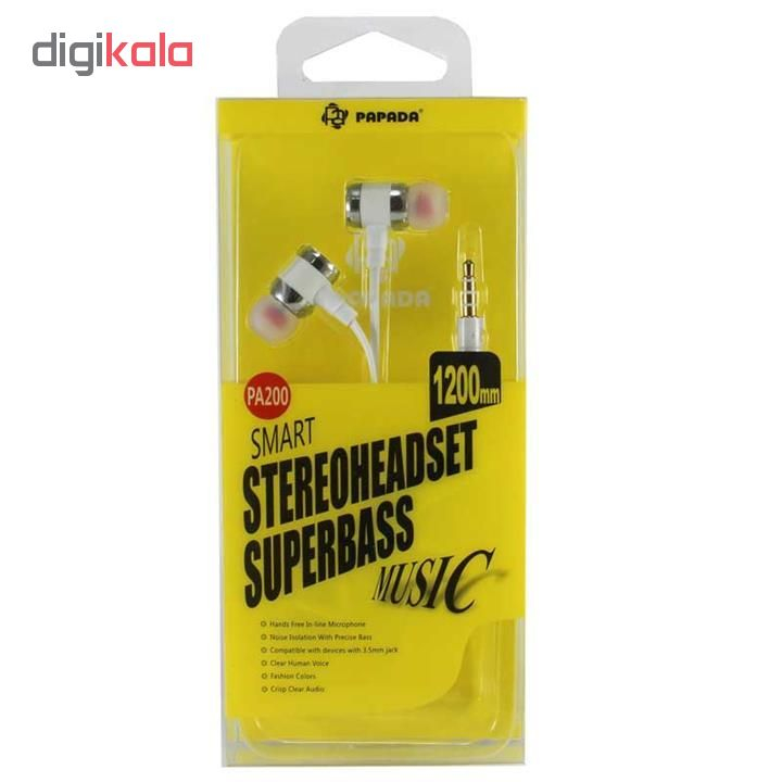 هندزفری PAPADA مدل PA200 از قبیل هندزفری های هوشمند (Smart Stereo Headset Super Bass Headphones) این کمپانی بوده که صدای بیس فوق العاده آن باوجود کیفیت صدای عالی Stereo ، شفافیت و وضوح مطلوبی را به مصرف کنندگان این محصول ارئه میدهد و شما میتوانید با این هندزفری تماس برقرار کرده و یا به موسیقی های خود با بهترین کیفیت گوش فرا دهید. همچنین PA200 در میکروفون خود دارای قابلیت حذف نویز و صداهای اضافه (Noise Isolation With Precise Bass) بوده و توانایی تفکیک صدای انسان (Clear Human Voice) را نیز دارا میباشد. یعنی صدای شما با کوچکترین جزئیات و کیفیت برای شنونده آن سوی تماس پخش میشود، بدون اینکه متوجه صداهای اضافی محیط اطراف شما شود. سیم این هندزفری بصورت پهن بوده و از هم تابیدگی و گره خوردن جلوگیری میکند که طول آن 1.200 متر و سری AUX آن از نوع جک 3.5 میلیمتری میباشد.
