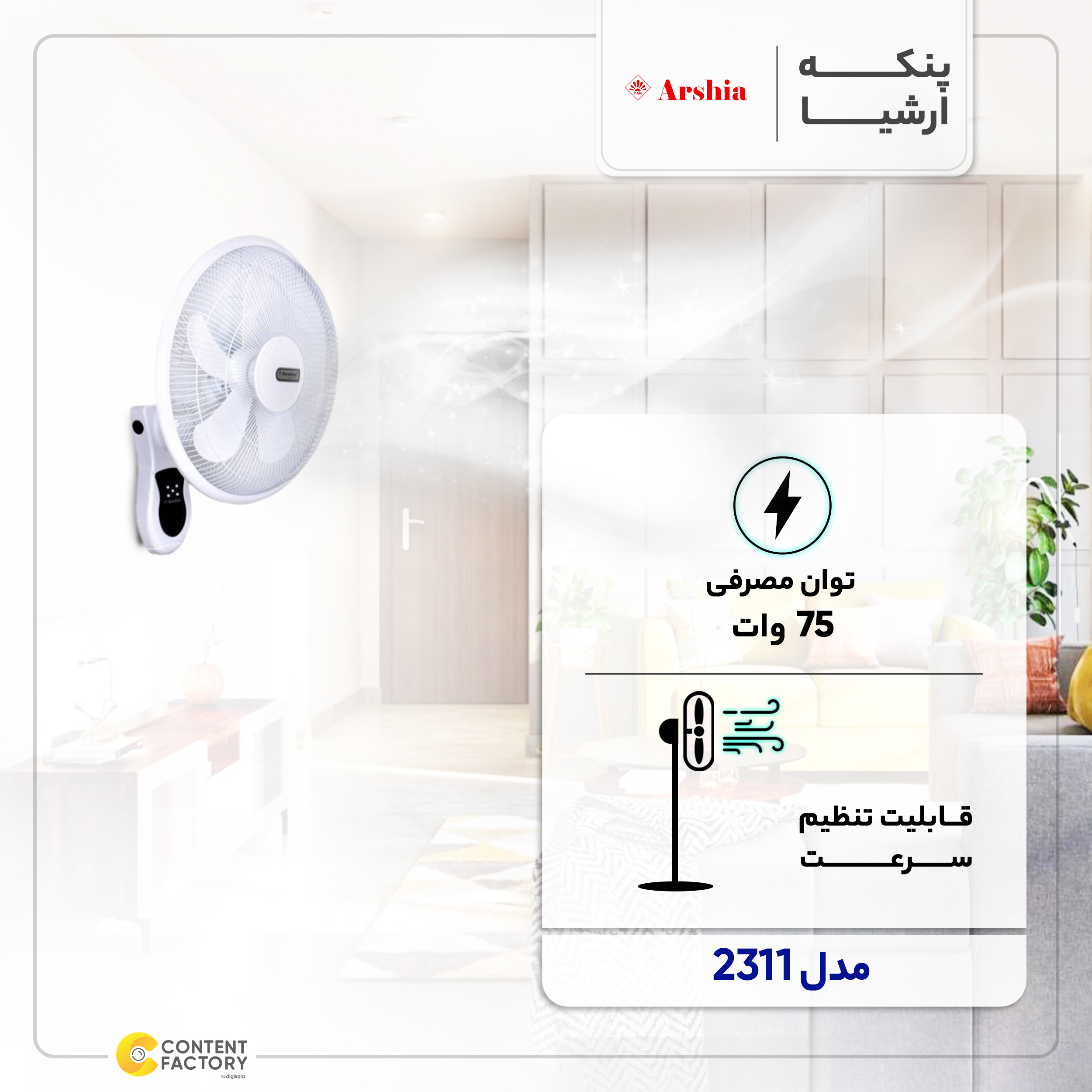- سایر توضیحاتدارای 5 عدد پروانه توان مصرفی 75 وات کم مصرف و پُر توان 5 متر باددهی مطلوب سه حالت سرعت: کم، متوسط و زیاد حالت نسیم گونه: عادی، نسیم بهاری و خواب صدای کم، مناسب استفاده در شب طراحی زیبا و منحصر به فرد دارای کنترل از راه دور امکان گردش چپ و راست امکان تنظیم تایمر از 30 دقیقه تا 7.5 ساعت