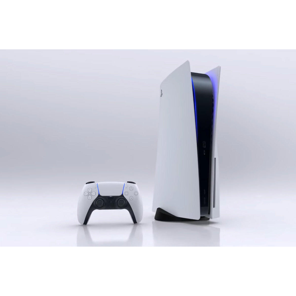 اولین موردی که در نگاه اول در مورد PS5 به چشم میخورد، تغییر محسوس ظاهر و حتی رنگ کنسول نسبت به نسلهای گذشته است. تقریبا بعد از پلی استیشن ۱ ( PS1 ) که از رنگ طوسی به عنوان رنگ اصلی کنسول استفاده شده بود، از رنگی مشکی به عنوان رنگ اصلی در تمامی نسلهای بعدی استفاده شد و شاید بعد از چند سال، رنگ جدیدی از آن کنسول توسط شرکت سونی به بازار میشد. اما در نسل جدید یعنی نسل نهم، سونی سنت شکنی کرده و رنگ سفید را به عنوان رنگ قالب قرار داده است. که البته ترکیب این رنگ سفید در کنار مشکی براق باعث زیباتر شدن آن شده است. نکته قابل توجه دیگری که در مورد ظاهر این کنسول به چشم میخورد، اندازه بسیار بزرگ آن است به طوری که کاملا برای شما محسوس خواهد بود. به گفته بسیاری از منتقدین، این اندازه بزرگ به دلیل سیستم خنک کننده بسیار گسترده آن است که این اندازه را منطقی جلوه میدهد. البته قضیه به همینجا ختم نمیشود و اوج نبوغ طراحی این کنسول زمانی است که مقداری به کنسول از فاصله نزدیک نگاه کنید و متوجه نکات جالبی خواهید شد. روی بدنه سفید رنگ این کنسول از طرحهای بسیار ریز چهار نماد اصلی این شرکت یعنی ضربدر، مثلث، مربع و دایره پوشیده شده است که این مورد در نوع خود بسیار جالب بود. البته بسیاری معتقد هستند که ظاهر این کنسول بسیار به آینده شبیه است و میتواند یک سفینه فضایی را تداعی کند. البته در کنار تمام این موارد با بزرگترین کنسول در بین سه نسل اخیر طرف هستیم که میتواند حرفهای زیادی برای گفتن داشته باشد.