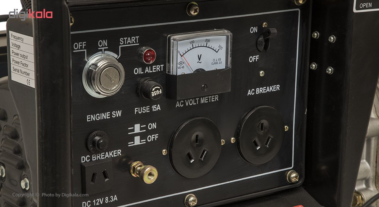 مشخصاتابعاد52 × 46 × 68 سانتیمترتعداد خروجی3 سوخت مصرفیگازوئیلی شدت جریان خروجی DC8.3 آمپرقدرت خروجی2800 واتنوع موتورتک سیلندر وزن80 کیلوگرمولتاژ خروجی AC220 ولت ویژگیهای موتور برقاستارت دستی استارت الکتریکی