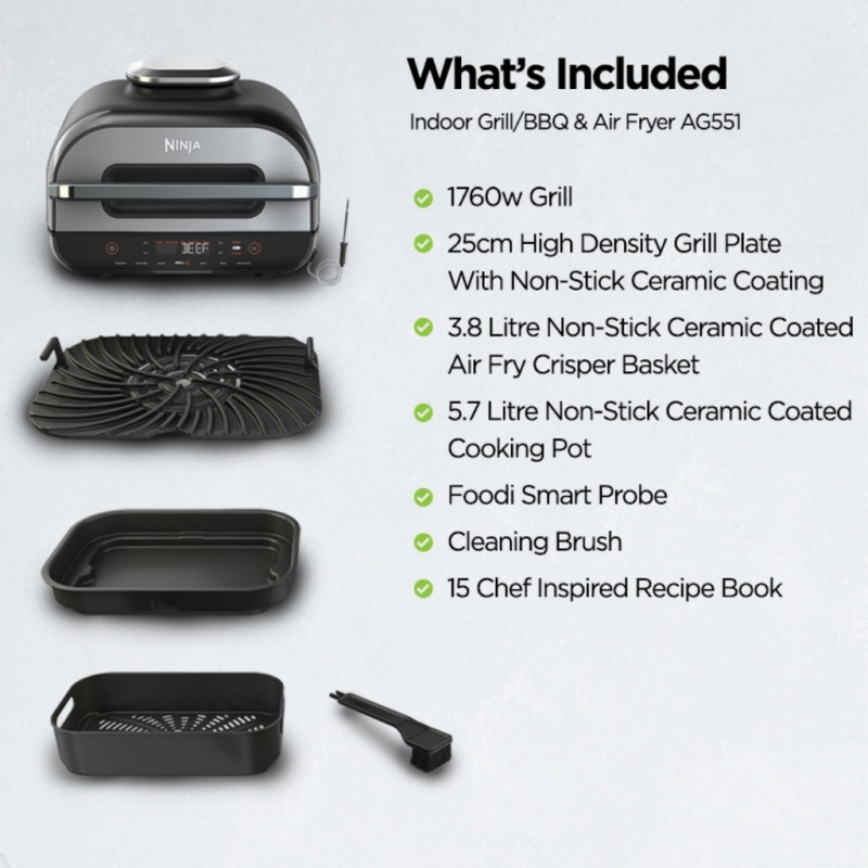 - سایر توضیحاتکبابپز Ninja Foodi Smart XL که چیپسها را سرخ میکند، میپزد و با تکنولوژی هواپز طبخ میکند. نسل دوم با طراحی شیک جدید با سیستم آشپزی هوشمند و ظرفیت XL، به وعدههای غذایی پرجمعیت خانواده با فشار دادن یک دکمه به پخت کامل، از rare تاwell done، دست پیدا کنید. گریل NINJA FOODI SMART با عملکرد 6 در 1 شامل:6 عملکرد پخت و پز همه کاره ازجمله Grill, Air Crisp, Roast, Bake, Broil, and Dehydrate با طیف وسیع دما فعال شده است.از دیگر ویژگی های جذاب این دستگاه که آنرا تبدیل به یک انتخاب مناسب برای کسانی که وقت زیادی ندارند کرده ویژگی تمیز کردن آسان آن است صفحه گریل با روکش سرامیکی، قابل جدا شدن، سبد و قابلمه پخت و پز همگی قابل شستشو در ماشین ظرفشویی هستند و به راحتی تمیز می شوند. کباب پز با ظرفیت بالا که دقیقاً با نتایج عالی پخت می شود بیش از یک گریل –با 6 عملکرد پخت: سرخ کردن با هوا، پختن، برشته کردن، گرم کردن مجدد، آبگیری و گریل کردن سیستم آشپزی هوشمند - کاوشگر پخت دیجیتالی به شما امکان میدهد بدانید چه زمانی غذای شما کاملاً پخته شده است، دقیقاً همانطور که دوست دارید، غذای سرخ شده تا 75 درصد چربی کمتر نسبت به روش های سرخ کردنی سنتی می باشد ، شامل قابلمه 3.8 لیتری، سبد کری سپر 3.8 لیتری، بشقاب گریل 740 سانتی متری مربعی، برس تمیزکننده، راهنمای دستور پخت آشپز است. قطعات قابل شستشو در ماشین ظرفشویی سیستم آشپز هوشمند کاوشگر پخت دیجیتال دقیقاً دمای غذای شما را در حین پخت نظارت می کند، بنابراین نیازی به این کار ندارید! از موارد کمیاب تا خوب انجام شده، پایان خود را انتخاب کنید و گوشت و ماهی مورد علاقه خود را با کاوشگر در جای خود بپزید. هشدارهای صوتی به شما اطلاع میدهند که چه زمانی آماده برداشتن و استراحت قبل از ارائه است. بیشتر از یک گریل با 6 کارکرد پخت و پز - سرخ کردنی در هوا، پختن، برشته کردن، آبگیری، گرم کردن و گریل کردن، غذاها و میان وعده های خوشمزه را برای کل خانواده ایجاد کنید. بدون نیاز به تلنگر با فناوری Cyclonic Air. از یخ زده بپزید. بشقاب گریل بزرگ 740 سانتی متر مربعی تا 6 همبرگر مناسب است. شامل قابلمه 3.8 لیتری و سبد کریسپر 3.8 لیتری. قابلیت میوه خشکن کن، سرخ کن ، گریل کردن و پخت و پز را دارد ، طول سیم 90 سانتی متر ، بدنه ضدزنگ ، ولتاژ 120 ولت ، آمپر 60 آمپر ، توان 1760 وات ، قابل شستشو در ماشین ظرفشویی را دارد .